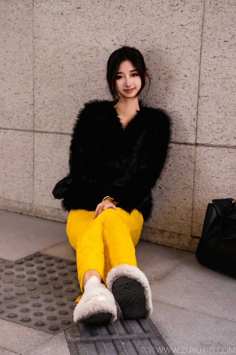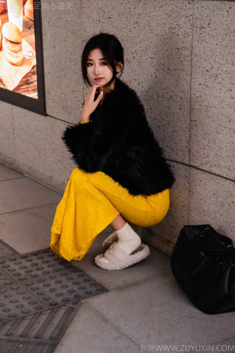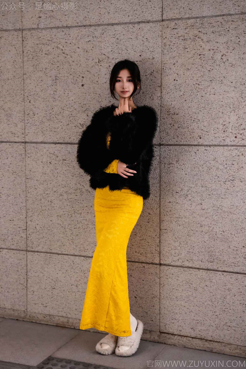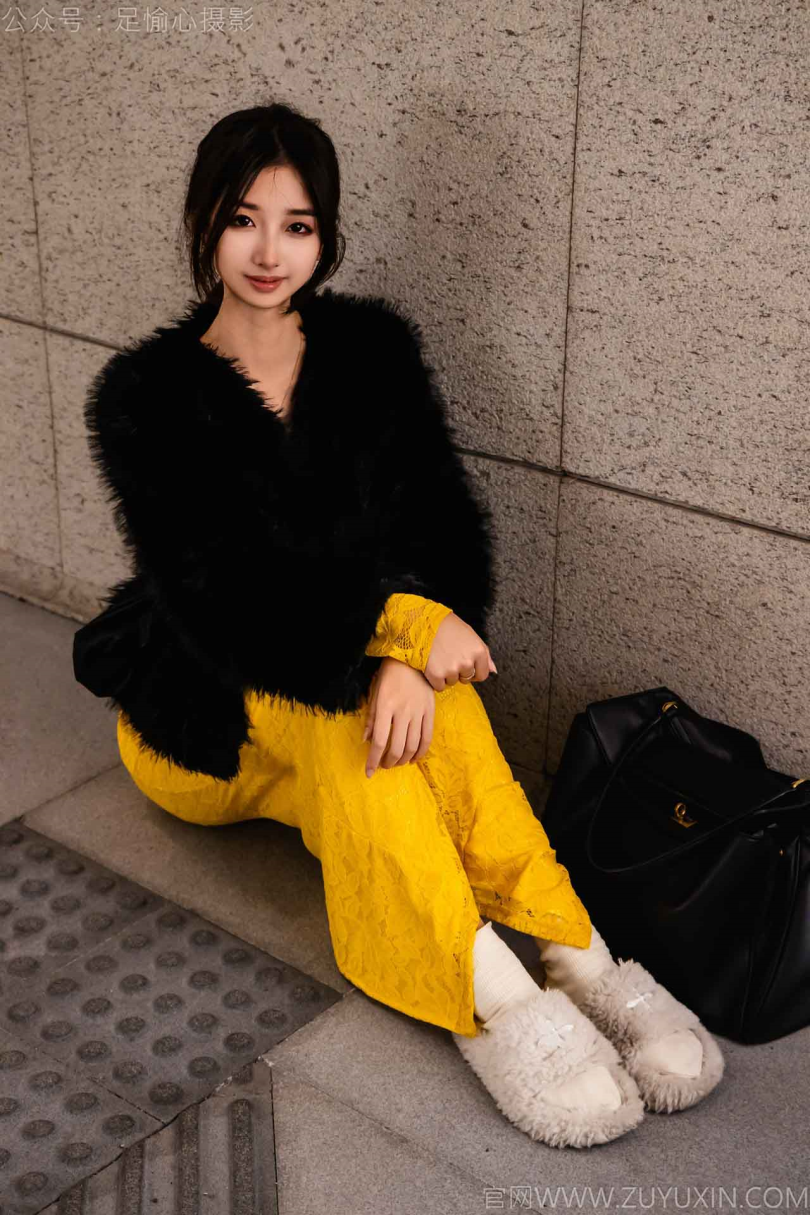 足愉心摄影第10期:模特星朵(搭配:黑色毛衫、黄色连衣裙、绒毛拖鞋、白色棉袜、裸足)