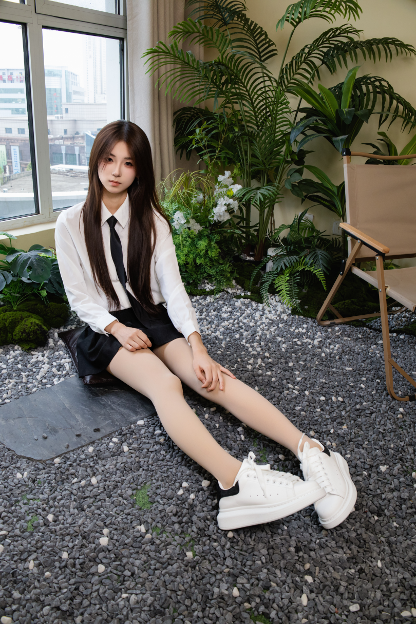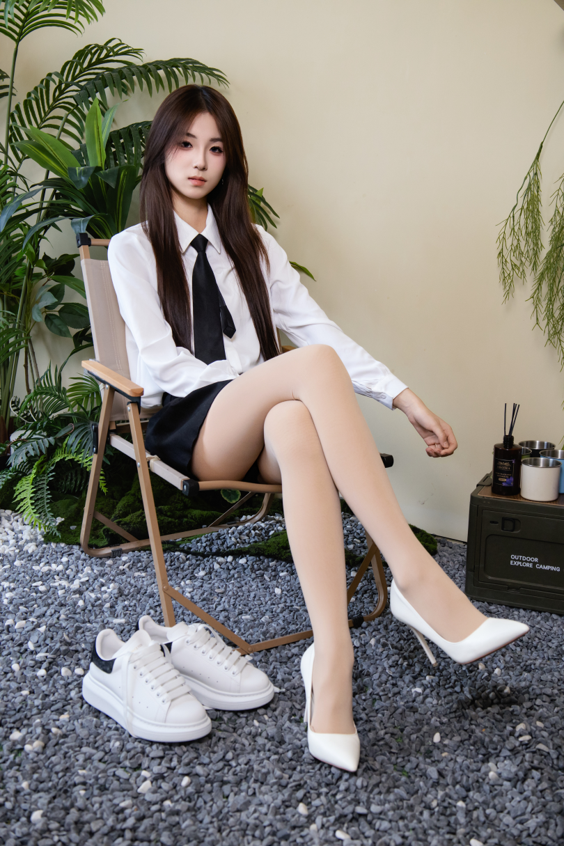 足愉心摄影第79期:模特小瑶(搭配:白色制服、黑色百褶裙、肉色丝袜、麦昆鞋、白色高跟鞋)