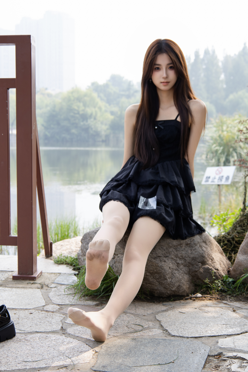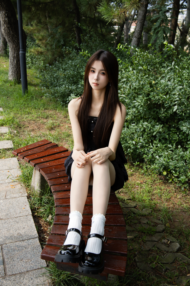足愉心摄影第75期:模特小瑶(搭配:黑色连衣裙、肉色丝袜、白色棉袜、玛丽珍小皮鞋)
