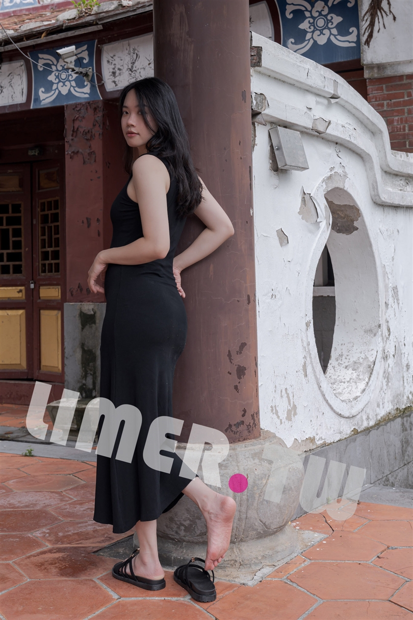 在涼亭裡休息時,Mona的腳趾在黑色連身裙下若隱若現,讓人忍不住想靠近看看她的白皙美趾。